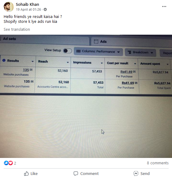 Sohaib Khan ne bhi aisay hi ads run ker k apnay Shopify store per results generate kiyay hain.