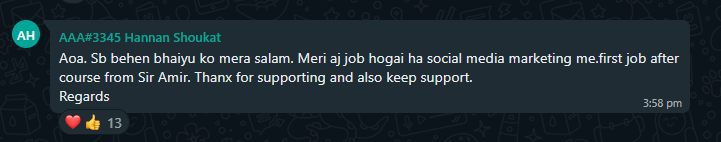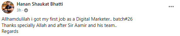 Aise hi aik student ki misaal ap k smny hai, jis ne scroll krty hoe digital marketing ki classes ka Ad dkha or apna wakt zaya krny k bjae faisla krty hoe hmara course enroll kiya… meaningful activity ki trf qadam brhaya… hunar seekhaa,,, apny hunar ko digital world mien sell krny ka treeka seekha… or ajj wo apny hunar ko mukamal istamal krty hoe musalsal agy brhh rha hai….